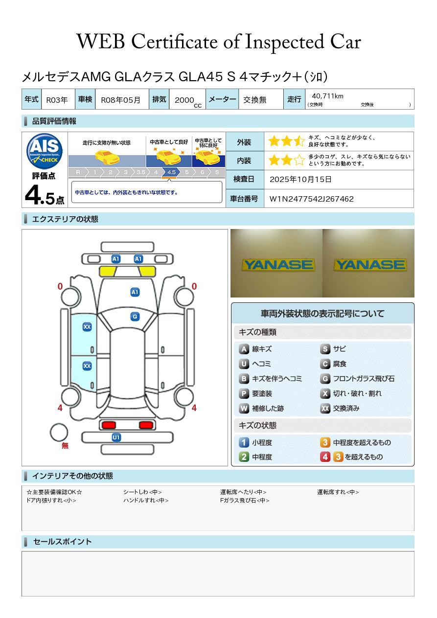 GLA45 S 4マチックプラス AMGアドバンスドパッケージ AMGパフォーマンスパッケージ