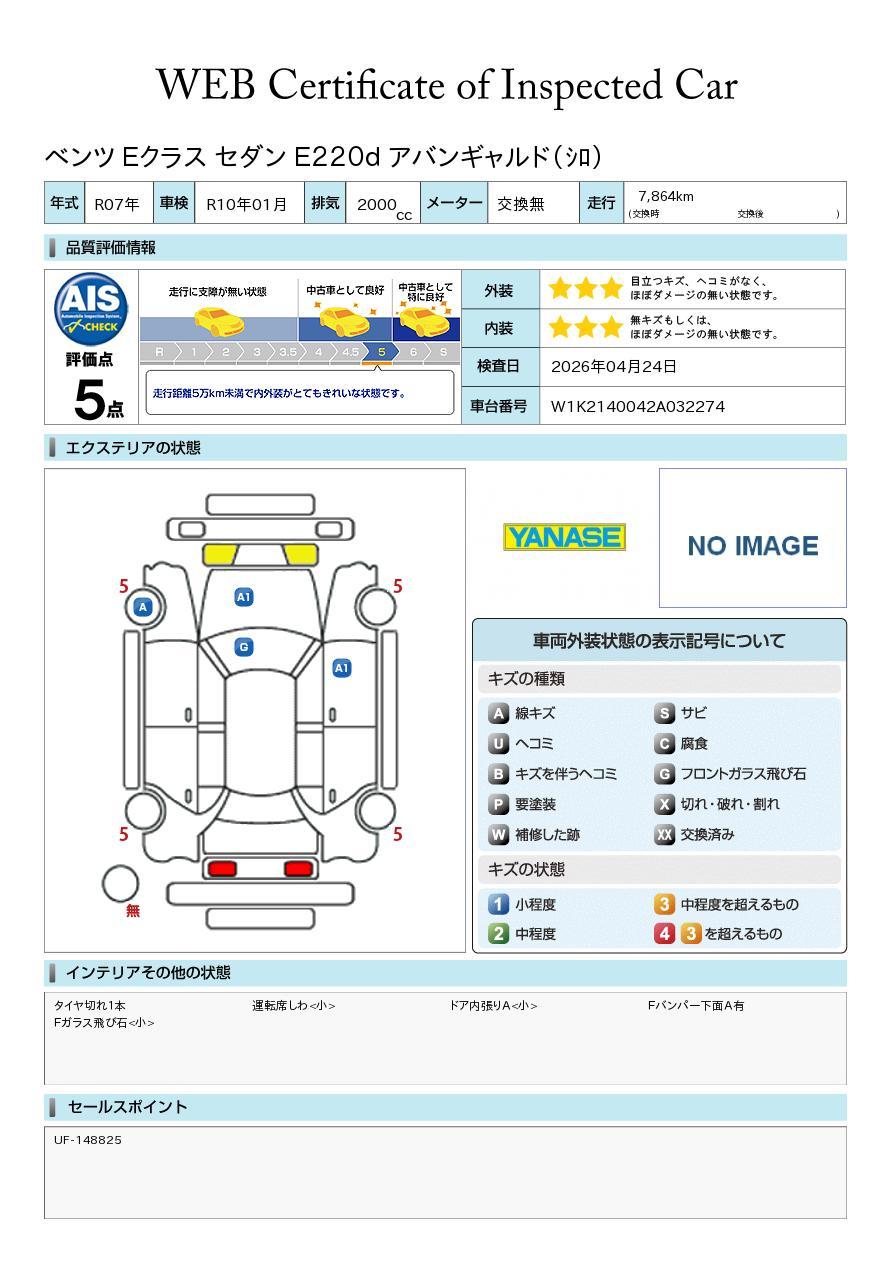 - 25年式低走行車両!評価点も5点と大変綺麗なE220d入荷!